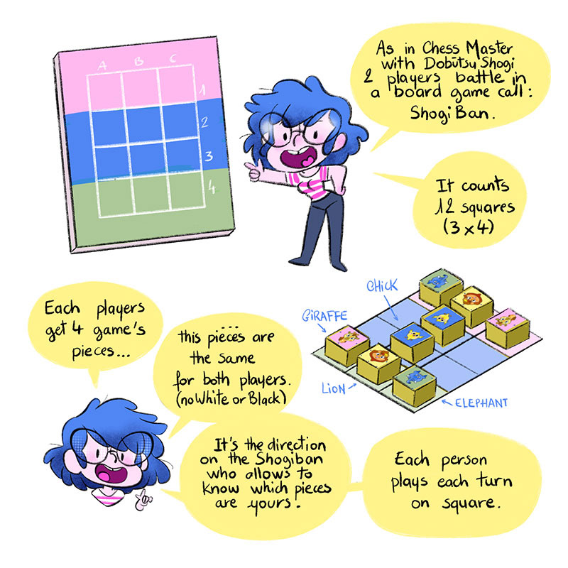 I make for my son a little comics and kit to play the "Dobutsu Shogi" game.
